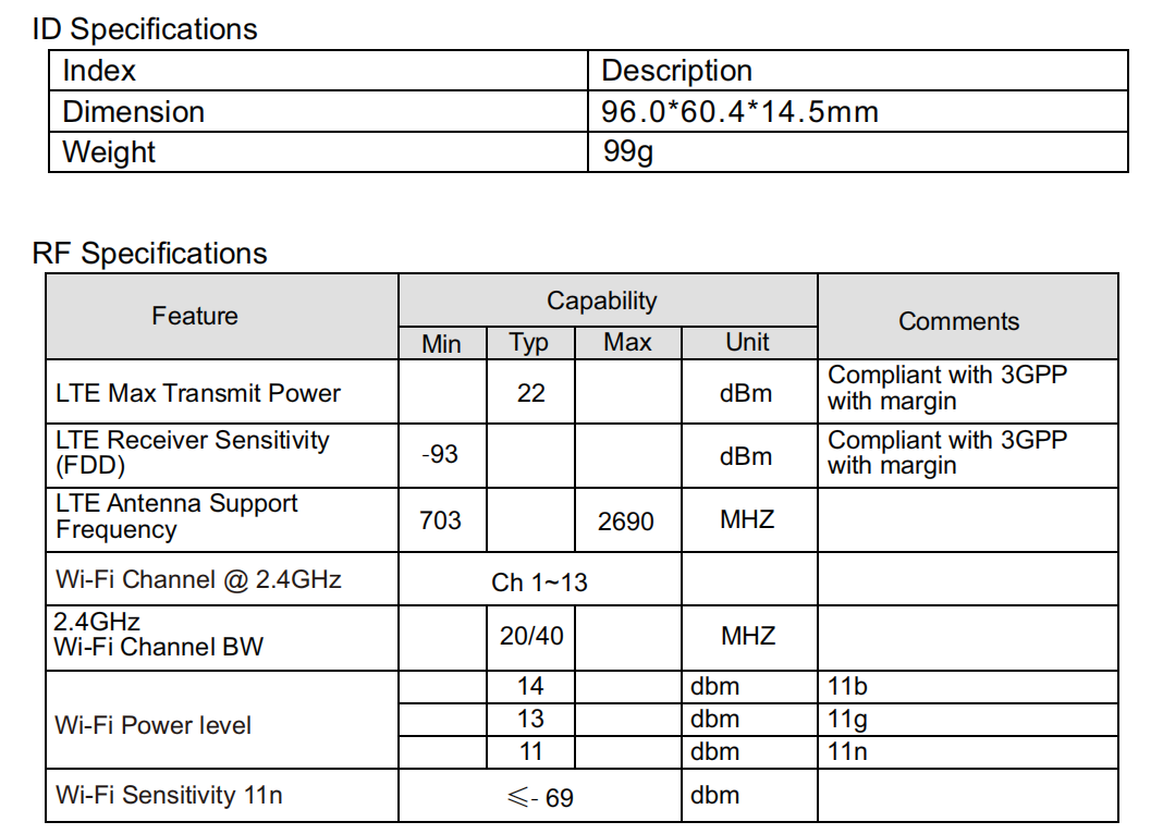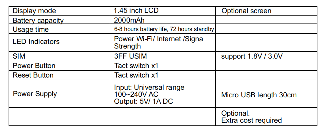 LED Indicator : Power, WAN, LAN, WiFi, Signal Strength, SMS